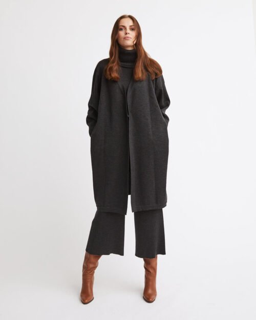 This Cardigan-coat is crafted from Italian 100% Extra fine merino wool. Featuring 2 seam pockets and ribbed strips, subtle ribbon detail on sleeves and JERRY SHEPHERD signature woven label inside. It’s a smart Cardigan-coat for all weather creating a rich and contemporary look for all modern women that cares about the environment. e.