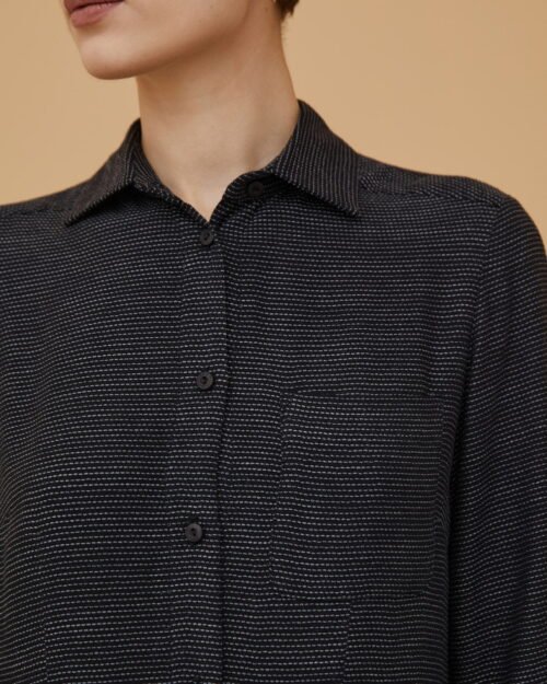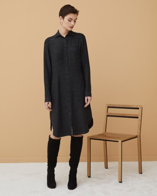 Slightly fitted shirt dress is made of extremely soft viscose and blends material. Featuring classic shirt collar, front button fastening, signature woven label, sleeves with buttoned cuffs and rounded hem.