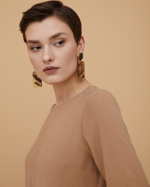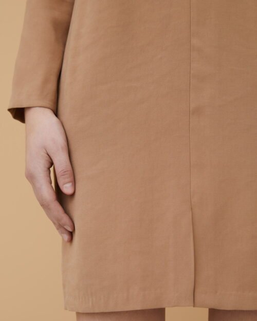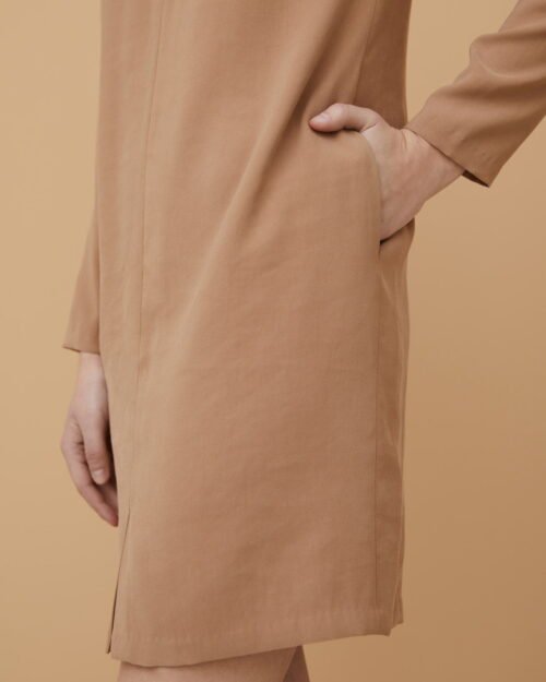 Tender rayon slightly fitted dress. Featuring a round neck, standard fitted sleeves, zipper in the back, comfortable pockets in side seams and viscose lining.