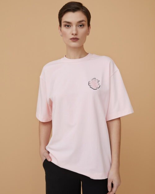 Koszulka unisex z krótkim rękawem wykonana z 92% z bawełny i 8% elastanu. Prosty krój, okrągły dekolt i wyjątkowy haft wiosennej lilii.