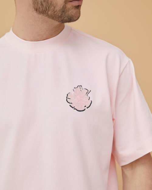 Koszulka unisex z krótkim rękawem wykonana z 92% z bawełny i 8% elastanu. Prosty krój, okrągły dekolt i wyjątkowy haft wiosennej świeżej lilii.